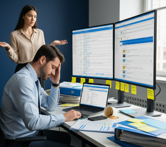 - Communication is scattered. One client emails from their work address. Another texts from their mobile. A third drops files in a shared folder you check… sometimes.